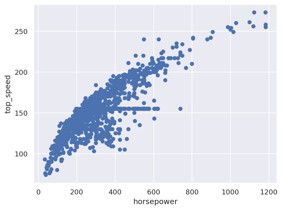 # use seaborn objects to create scatter plot of horsepower vs top speed