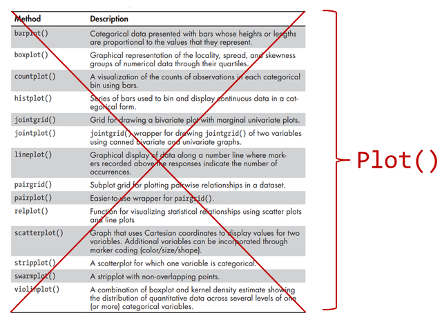 The SO’s Plot() class comes with many methods for specifying marks, scale data, faceted or paired subplots, figure dimensions, labels, and saving plots, etc. These are listed in the following diagrams.